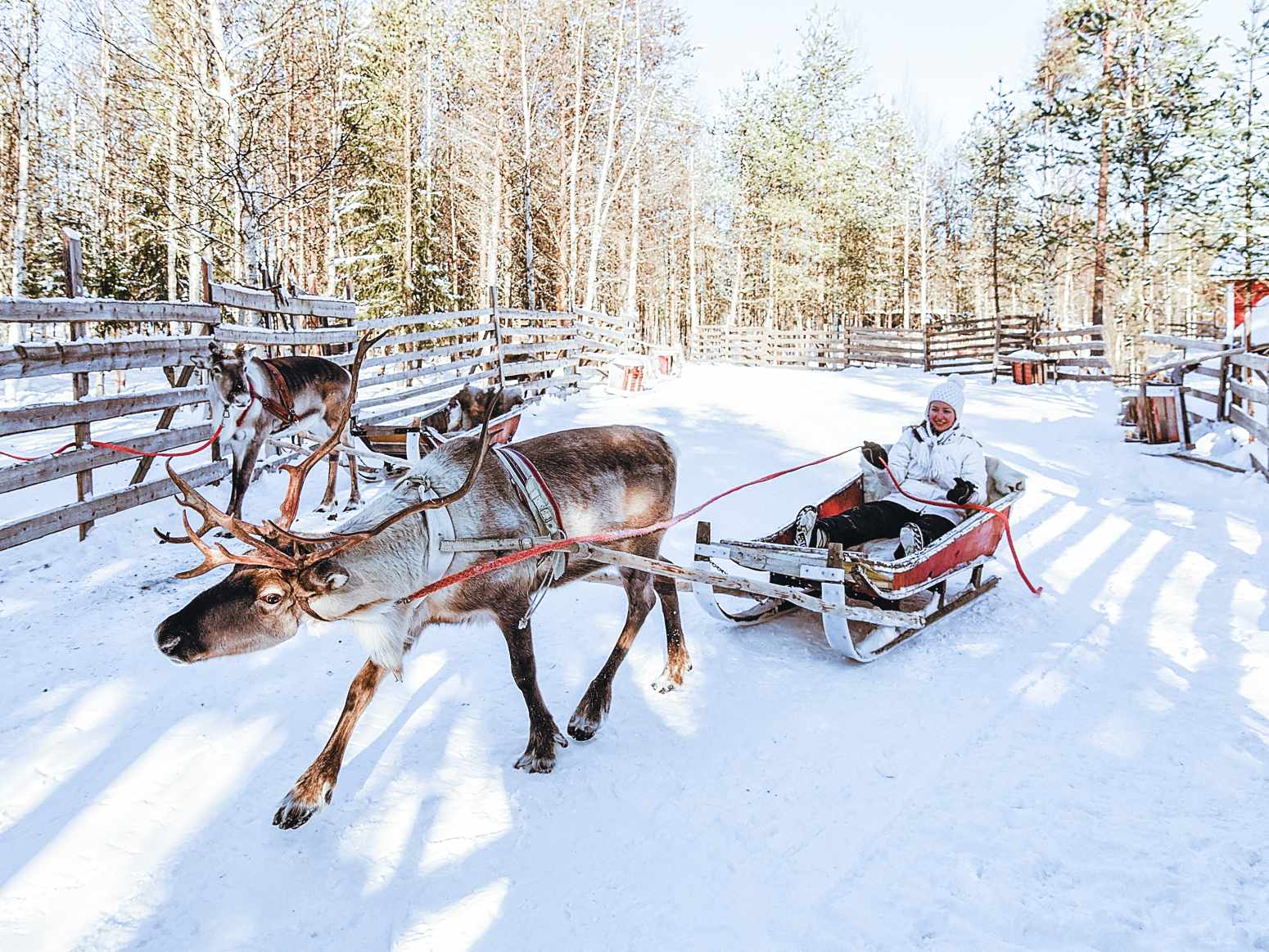 Después del desayuno buffet, comenzaréis una jornada que conecta con la cultura más auténtica de Laponia. Nos desplazaremos hasta una granja de renos cercana, donde los cuidadores lapones compartirán su forma de vida y el vínculo tan especial que mantienen con estos animales, símbolo del Ártico. Descubriréis cómo se adaptan al invierno, de qué se alimentan y qué papel tienen en la tradición local. Visitaremos el recinto donde se encuentran las hembras —muchas de ellas gestando durante el invierno— y podréis alimentarlas, viviendo una experiencia cercana y muy especial, sobre todo para los más pequeños. Después disfrutaréis de un paseo en trineo de renos, donde cada animal, con su propio nombre, os guiará a través de un paisaje completamente nevado. Un momento perfecto para fotografiar y dejarse llevar por la magia del entorno. El almuerzo tendrá lugar en una kota tradicional, donde el calor del fuego crea un ambiente acogedor y auténtico. La tarde quedará libre para disfrutar de la cabaña, jugar en la nieve o practicar esquí. Cena en el complejo Salla Tuvat y alojamiento.